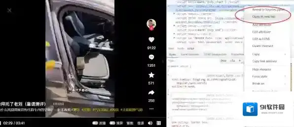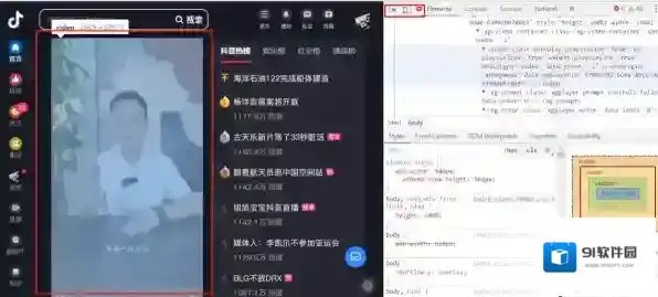 第3步,点击元素箭头,用元素箭头选中页面上的抖音视频。