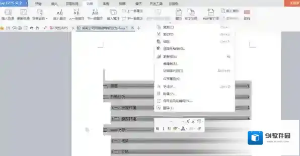 6、这样就生成了一个目录,同时还可以对目录的格式进行修改,选中已经生成的目录,然后右键单击,在弹出的菜单框中去设置就行了。