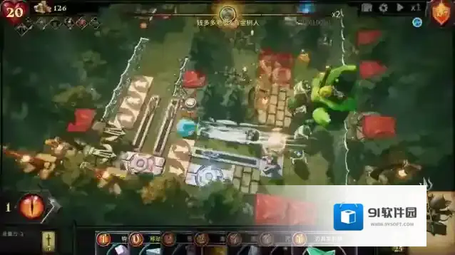 4、正式开始后怪物会从红色区域出现,并前往蓝色区域,当角色进入陷阱范围会后陷阱会自动进行攻击,消灭敌人可以获得魔眼来使用新的卡牌。