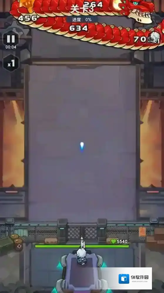 2、进入关卡后巨龙会慢慢向你靠近,角色会自动发射子弹,你可以移动角色来攻击巨龙。