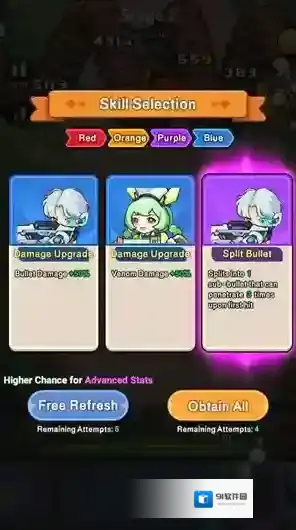 2、进入关卡后角色会自动攻击出现的敌人,当消灭某些部位后会获得技能强化或者获得新英雄。