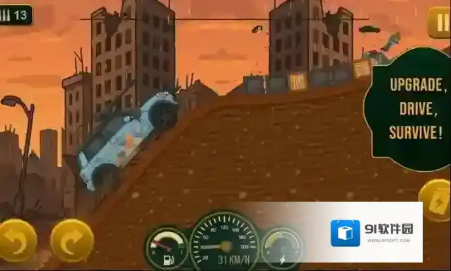 游戏中的玩法是很经典的冲刺闯关,你将驾驶各种车辆来一路冲刺抵达安全屋,通过获得更多金币来升级不同的设施,解锁更多的车辆让你可以跑的更远,完成各种各样的挑战任务来获得丰富的奖励,不断击败更多的僵尸来保护自己的车辆,不断冲刺在这个末日世界里生存下去。