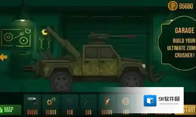 3、在正式开始前玩家可以对自己的车辆进行升级,你可以选择不同的设施来提升等级,升级完毕后点击start就可以开始。