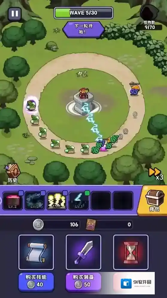 2、进入关卡后角色会自动攻击敌人,击败敌人可以获得银币。