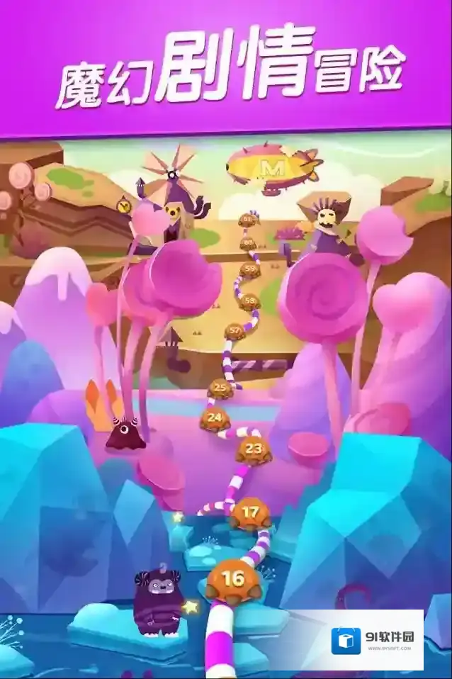 1、埃勒里将召唤强大的糖果怪物来帮助你通过数百个精心设计的关卡和许多原创的游戏方式