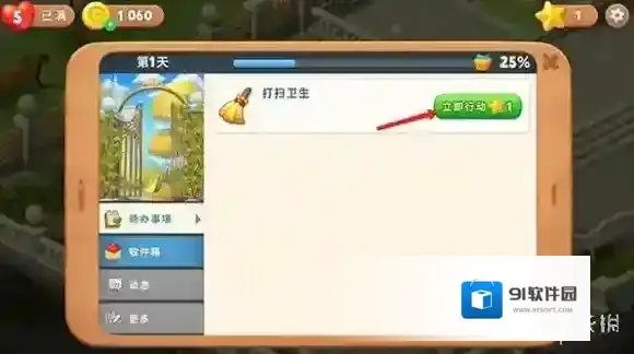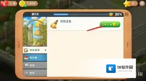 5、出现打扫卫生的任务了,选择立即行动选项。