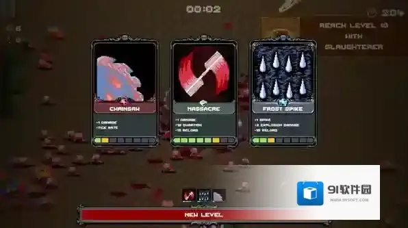4、消灭恶魔怪物后会掉落红色经验球,拾取后可以提升等级,升级后能选择一个技能强化自己。