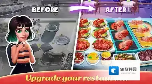 3、不断的去解锁更多的区域和主题餐厅,去尝试制作更多丰富类型的美味食物,享受烹饪的乐趣。