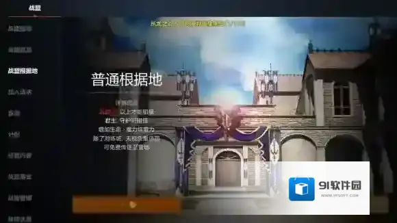 战盟等级达到3级后,战盟的君主以及守护者有资格购买战盟根据地!在战盟根据地中,成员回复生命以及魔力的速度更快。