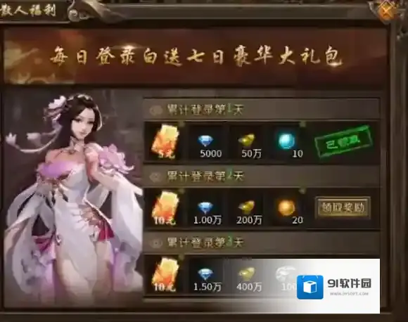 6、开启散人福利,每天登录白送七日豪华大礼包等