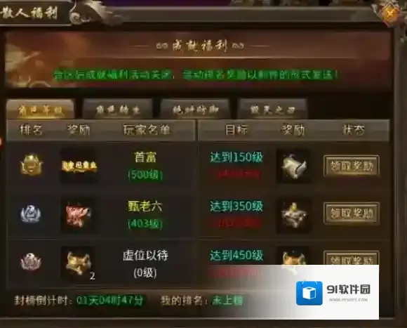 合区后成就福利活动关闭,活动排名奖励以邮件的形式发送!