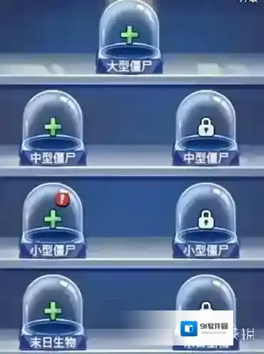 3、僵尸类别共分为杂物、末日生物、小型僵尸、中型僵尸、大型僵尸5种。