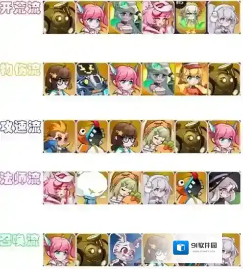 以攻速为核心的流派,琪琪担任主要核心位置,可配合符文镇纸石频繁触发被动让队友去输出。