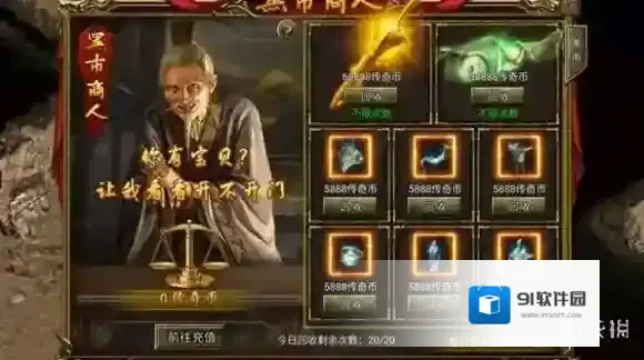 通过黑市商人回收装备,获取传奇币,这些传奇币可用于与战力提升相关的消耗。
