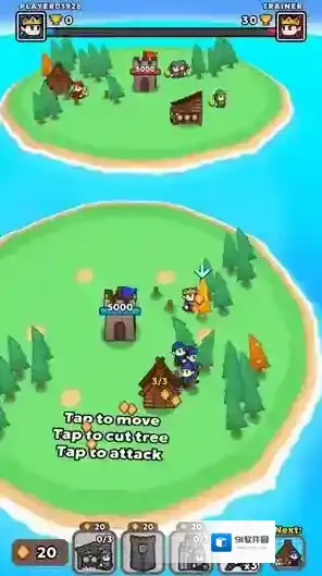 游戏中玩家需要放置不同的建筑来召唤小兵进行战斗,通过砍树收集资源来召唤不同的兵种,合理搭配你的兵种来完成不同的挑战,解决各种各样的敌人来获得不同的奖励,运用不同的计谋在战斗中获胜,不断获胜来成为最厉害的国王。
