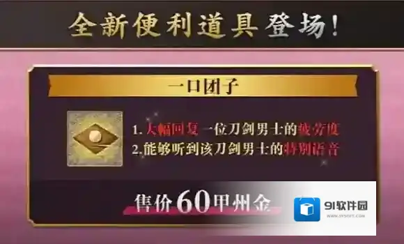 本次活动结束后,仍可在万屋购买一口团子,依旧可以使用道具一口团子恢复刀剑男士疲劳值,并听到特殊语音。