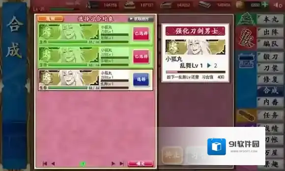通过「习合」使用相同的刀剑男士来提升「乱舞」等级。
