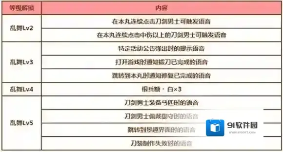 「乱舞」等级提升后,可以触发新的语音并了解到刀剑男士新的一面。
