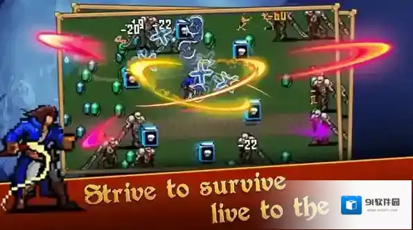 3、进入游戏场景后,操控英雄与如蝙蝠等怪物战斗,注意屏幕上方的等级、时间等信息,适时使用技能。