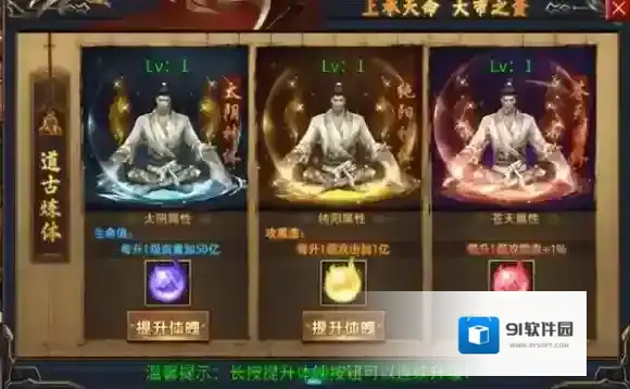 提升太阴、纯阳、苍天等属性体魄,能分别增加生命、攻击、防御等属性。