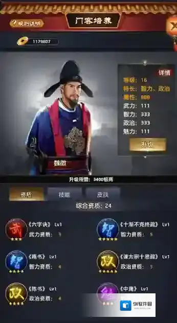 3、门客培养中最简单的方式就是对自己的门客等级进行提升,等级提升也是最简单的,只要使用金币就可以直接进行!