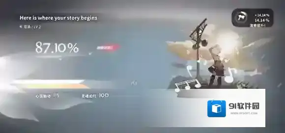 3、每成功通关一个故事章节,即可解锁一首新歌曲。左下角设有难度提示,点击即可开始演奏。
