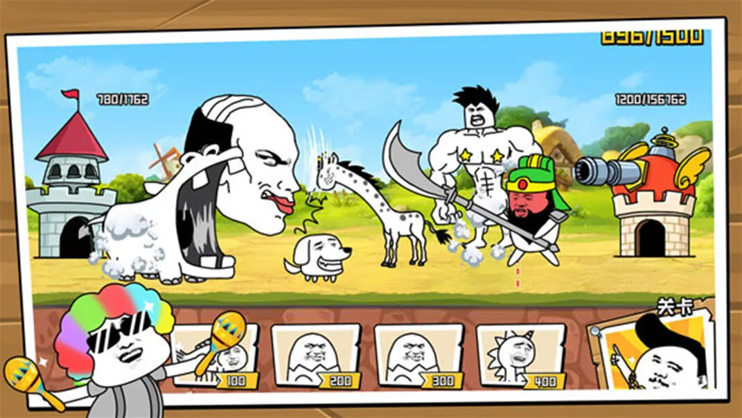 表情乱斗大作战游戏是一款以金馆长为主题制作的沙雕策略塔防手游,在游戏中拥有多种不同形象的表情包角色可以进行召唤,不同的角色召唤所需要的金币数目不同,金币每秒都会自动获取,你还可以通过升级表情包角色来增强表情包角色的属性。