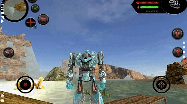 1、进入游戏中玩家可以切换机甲的形态,在陆地上可以与其他的机甲进行对战。