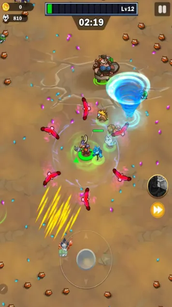 1、游戏中拖动屏幕即可移动攻击敌人。