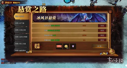 找到左上角的悬赏之谷,完成冰风谷、地下城、失落之塔等不同地图中的任务,包括升级、觉醒挑战等。完成任务后,你可以获得真充、金币、宝石等丰厚奖励。