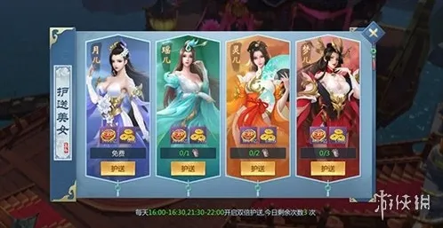 玩家每日可参与3次,根据拥有的护花令数量选择要护送的美女,越高级的美女护送成功可获得的经验越高。