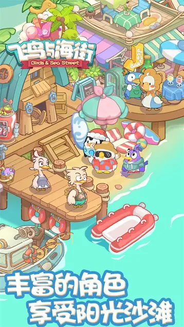 飞鸟与海街是一款治愈系模拟经营手游。海浪轻轻拍打着码头,阳光洒在细软的沙滩上。第一批飞鸟旅客已经抵达,它们拖着行李箱、戴着遮阳帽,叽叽喳喳地涌向你的旅店前台。这是你在海街上开业的第一天,你将化身为一只海鸟,在风景宜人的海岛上从零开始打造属于自己的商业街区。接待南来北往的飞鸟旅客,为他们办理温馨的入住,赚取第一桶金。随着旅店升级,你可以逐步解锁并开设香气四溢的咖啡店、时尚前卫的泳装店、热气腾腾的火锅店等多种梦幻店铺。