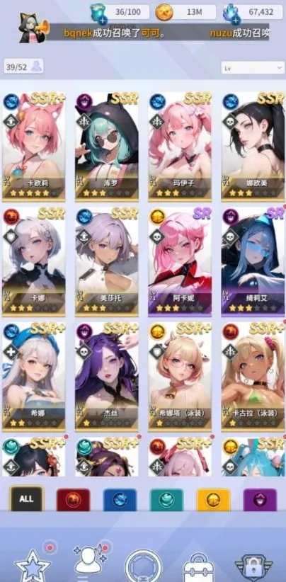 2、我们通过等级和通关各种奖励,正常已经有了足够再抽两次up池十连的钻石,如果当期正好有光暗属性的up,则建议全部钻石梭哈;如果没有光暗属性up,那只能进风水火up池了。除了钻石奖励,关卡和各种活动还会赠送约两次十连抽普通卡池的资源,这样全都抽取结束后,我们正常已经有了六七只SSR或以上的卡,我们除了初始的SSR+以外,再选取两只相同属性的SSR卡,全都培养到目前能培养的最高等级,然后用这三张卡放在最前排,继续推图。