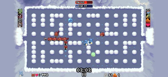 迷宫老鼠Maze Mice是一款Roguelite弹幕生存游戏。玩家操控一只老鼠在迷宫地图中移动,停止操作时,游戏完全静止。猫的追击、技能的冷却倒计时、敌人的动作全部冻结。只有当你推动摇杆或触摸方向键时,时间才会继续流逝。包含30名可解锁角色,63种升级项,每只老鼠拥有不同的初始技能如火焰尾迹、炸弹等。