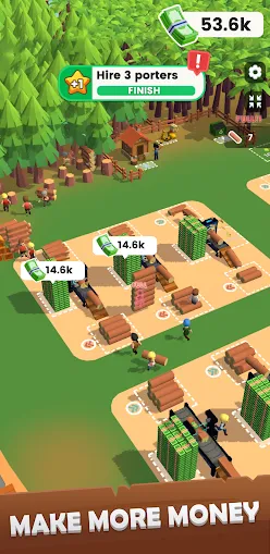 1、招聘拥有不同技能的工人,勤劳的伐木工、熟练的锯工和精明的销售经理,分配他们的职责,高效运营你的木材帝国!