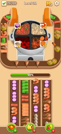 1、海鲜、肉类、蔬菜、丸子等各种丰富的食材都会随着挑战而慢慢解锁,带来超棒的视觉体验。