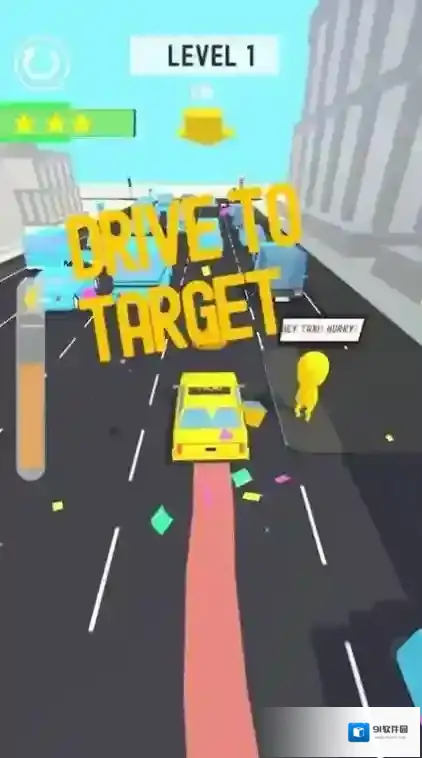 1、LEVEL1,控黄色出租车,沿红路线,避行人,追“DRIVE TO TARGET”目标。