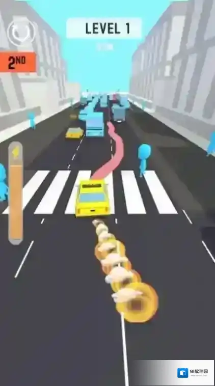 2、过斑马线,超蓝色车辆,吃加速道具(黄圈),升“2ND”,再冲“1ST”。