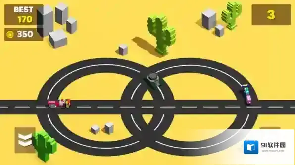 2、换沙漠场景,开彩色赛车,沿环形道,超对手,吃金币(350),刷“BEST170”。