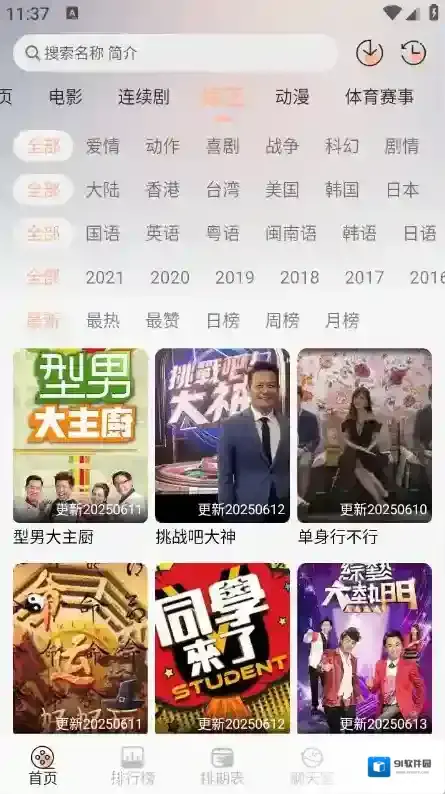 2、首页顶部栏中汇集了很多的影视资源,电视剧、电影以及综艺等类型都有。