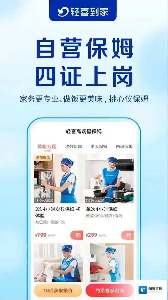 轻喜到家:直营保洁、保姆、月子、育儿、早教、家政服务平台,以科技驱动服务升级,实现全流程5级管控,通过智能清单管理,专业服务看得见,便捷的下单、标准的服务流程、透明的价格体系