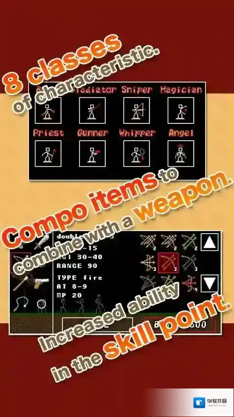 2、火柴人角色设定:以天赋异禀的火柴人为角色,各角色属性技能各不相同,为玩家提供多样选择,通过培养不同火柴人,体验差异化的战斗策略与冒险玩法。