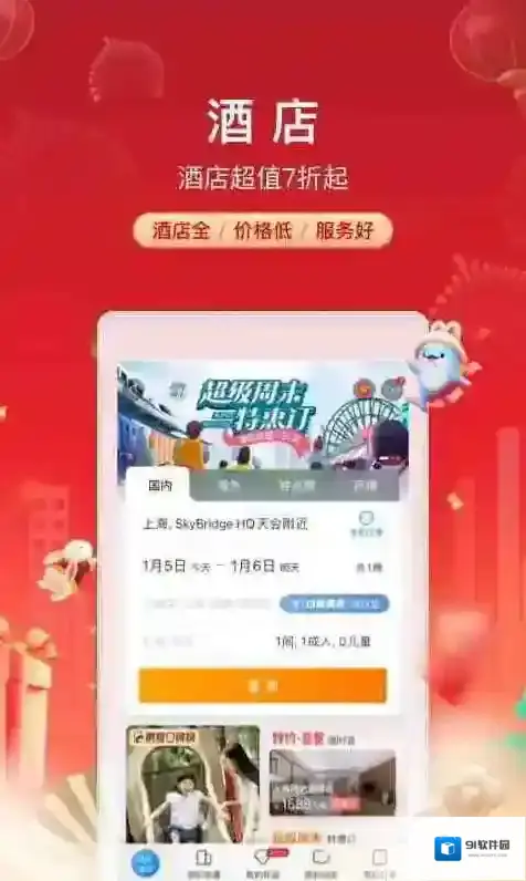4、全国酒店天天有半价,经济连锁酒店6折起,五星酒店11元起秒杀。