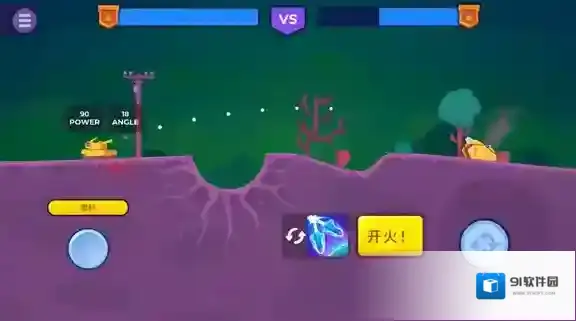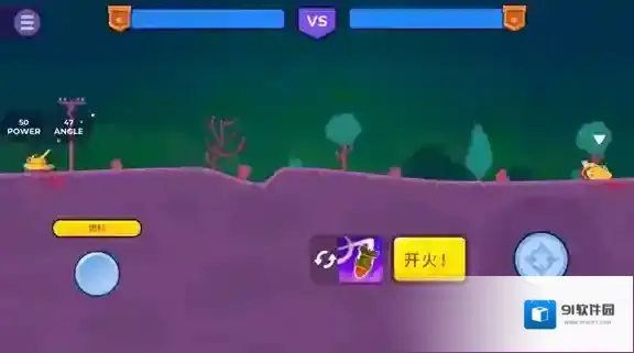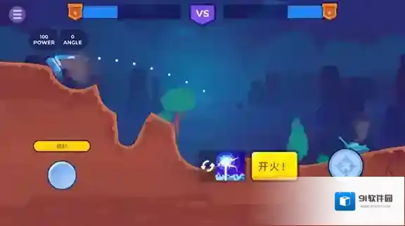 3、进入关卡后点击左边来移动坦克,滑动右侧轮盘来选择发射角度和力度,点击开火按键可以发射炮弹攻击敌方坦克。