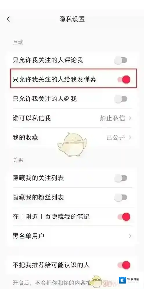 4、最后进去之后,点击开启只允许我关注的人给我发弹幕,就成功禁止陌生人发弹幕了。