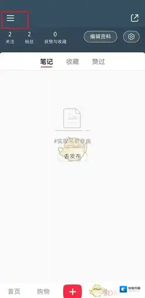 1、打开小红书,进入个人主页之后,点击列表图标;