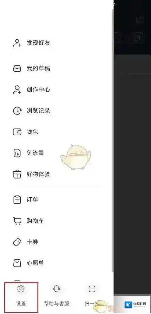 1、打开小红书app之后进入,打开菜单栏,点击“客服与帮助”。