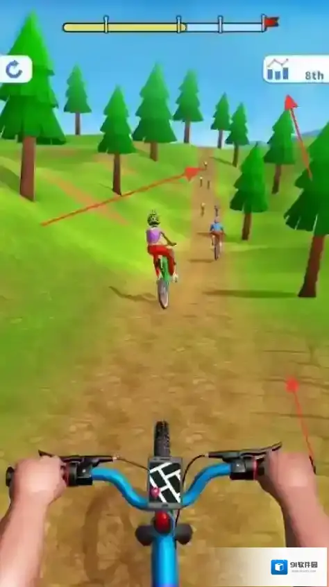 3、通关主线后,可参与全球排名赛,与顶尖车手同台竞技,解锁隐藏赛道与限量版自行车,展示骑行技术与改装成果。