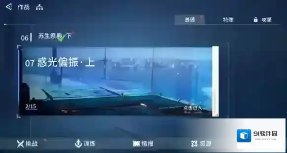 1、进入游戏大厅后,点击作战就可以进入游戏章节选择了。
