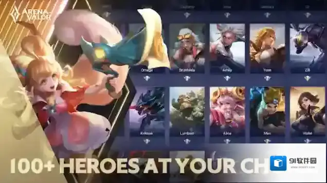 2、丰富多样的英雄可以去选择,法师、刺客、射手、辅助等多种职业可以组合,用最棒的阵容去赢得比赛。